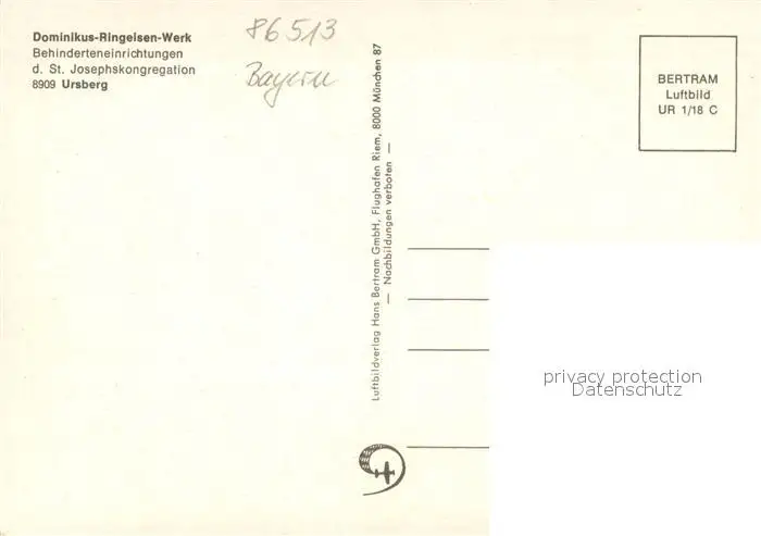 Ursberg Dominikus Ringeisen Werk Fliegeraufnahme Ursberg postalisch nicht gelaufen nach 1965 Erhaltung siehe scans [WerneD78] WernPID7