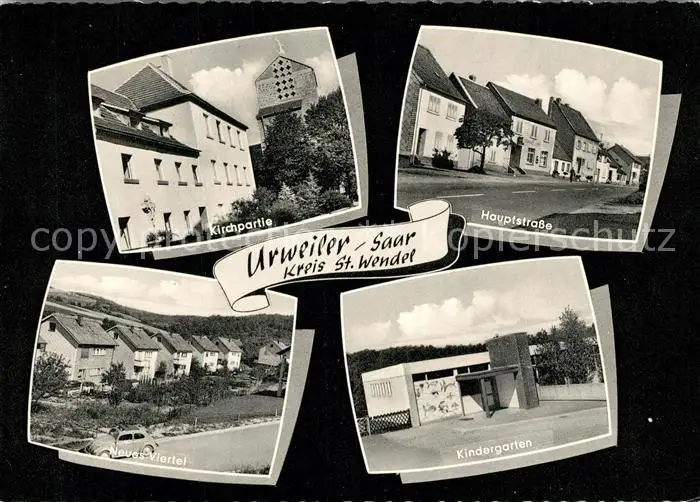 Urweiler_Saar Kategorie Alte Ansichtskarten Postkarten bx53999 Urweiler_Saar Kirche Hauptstrasse neues Viertel Urweiler_Saar postalisch nicht gelaufen Erhaltung siehe scans [NatalD47]