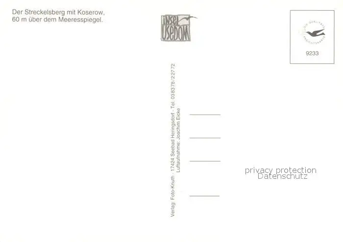 Usedom Der Streckelsberg mit Koserow Fliegeraufnahme Usedom postalisch nicht gelaufen nach 1965 Erhaltung siehe scans [WerneD78] WernPID7