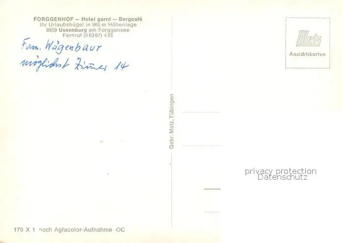 Ussenburg Hotel Bergcafé am Forggensee Ussenburg postalisch nicht gelaufen nach 1965 Erhaltung siehe scans [FriedD77] Frierer