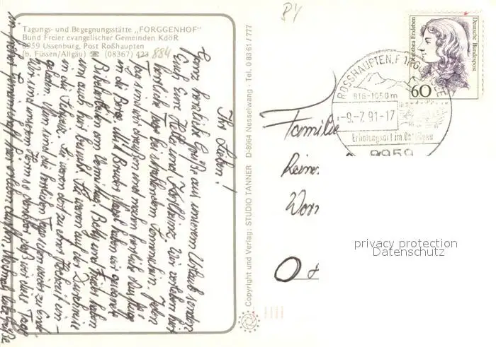 Ussenburg Tagungs- und Begegnunsstaette Forggenhof Restaurant Kaminecke Hallenbad Ussenburg postalisch gelaufen 1991 Erhaltung siehe scans [FriedD77] Frierer