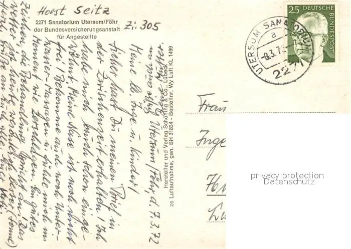 Utersum Fliegeraufnahme Sanatorium Utersum postalisch gelaufen 1972 Erhaltung siehe scans [KathaD81] Kathoren
