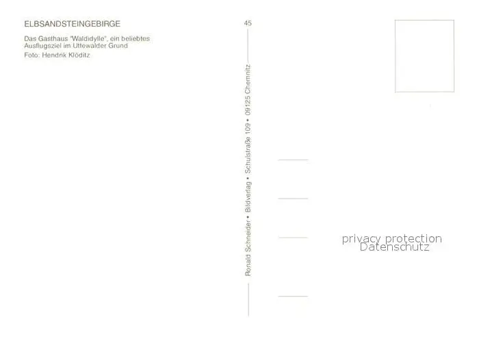 Uttewalder_Grund Gasthaus Waldidylle Ausflugsziel im Elbsandsteingebirge Uttewalder Grund postalisch nicht gelaufen nach 1965 Erhaltung siehe scans [FriedD77] Frierer