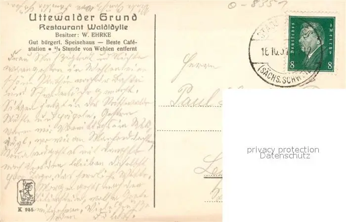 Uttewalder_Grund Restaurant Waldidylle Uttewalder Grund postalisch gelaufen 1931 Erhaltung siehe scans [WerneD78] WernPID7