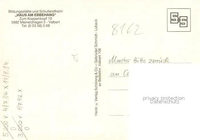 Valbert Bildungsstaette Schullandheim Haus am Ebbehang Innenraeume Sportplatz Valbert postalisch nicht gelaufen nach 1965 Erhaltung siehe scans [FriedD77] Frierer