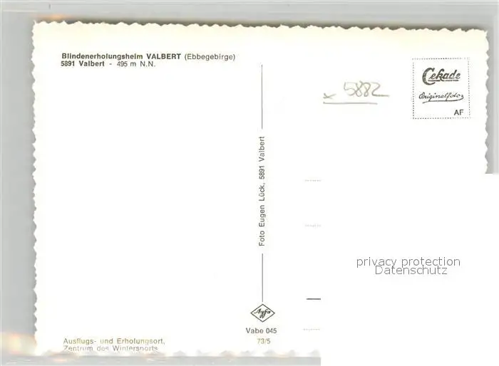 Valbert Blindenerholungsheim Valbert postalisch nicht gelaufen nach 1965 Erhaltung siehe scans [LiesaD40] LiesID40