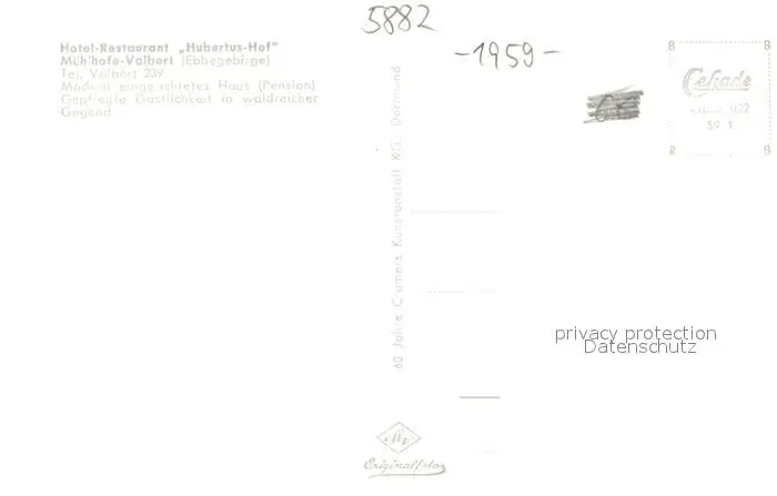 Valbert Hotel-Restaurant Hubertus Hof Innen und Aussen Valbert postalisch nicht gelaufen 1959 Erhaltung siehe scans [LiesaD40] LiesID40