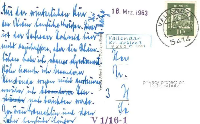Vallendar Totalansicht Vallendar postalisch gelaufen 1963 Erhaltung siehe scans [LiesaD40] LiesID40