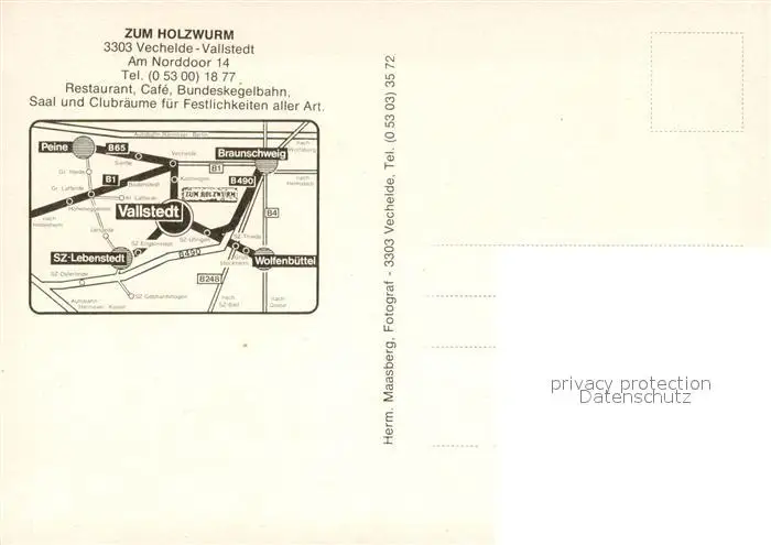 Vallstedt Restaurant zum Holzwurm Vallstedt postalisch nicht gelaufen nach 1965 Erhaltung siehe scans [FriedD77] Frierer