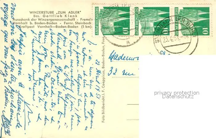 Varnhalt Winzerstube zum Adler Gottlieb Klenk Varnhalt postalisch gelaufen 1951 Erhaltung siehe scans [LiesaD40] LiesID40