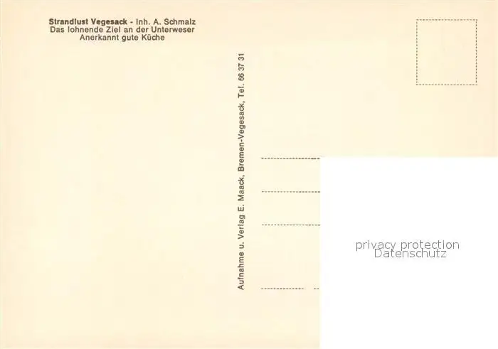 Vegesack Restaurant Strandlust an der Unterweser Segelboot Vegesack postalisch nicht gelaufen 1921-1965 Erhaltung siehe scans [FriedD77] Frierer