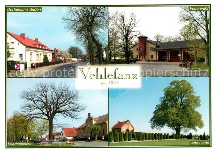AK / Ansichtskarte Vehlefanz Dorfeinfahrt Feuerwehr Alte Linde Friedenseiche Natur Vehlefanz