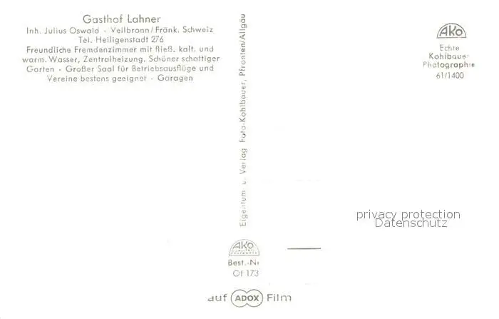 Veilbronn Ortsansicht mit Gasthof Lahner Fraenkische Schweiz Veilbronn postalisch nicht gelaufen 1961 Erhaltung siehe scans [FriedD77] Frierer