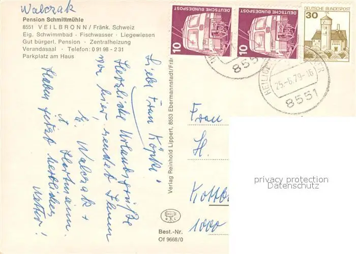 Veilbronn Pension Schmittmuehle Fraenkische Schweiz Veilbronn postalisch gelaufen 1979 Erhaltung siehe scans [FriedD77] Frierer