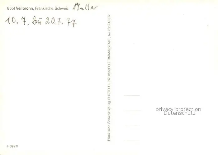 Veilbronn Teilansicht Erholungsort in der Fraenkischen Schweiz Veilbronn postalisch nicht gelaufen 1977 Erhaltung siehe scans [FriedD77] Frierer