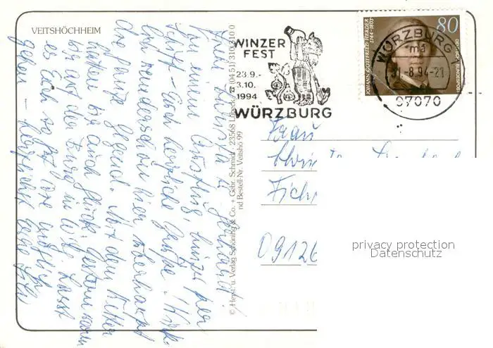 Veitshoechheim Pfarrkirche St. Vitus Rokokoschloss Erwin Vornberger Platz Untere Maingasse MS Fortuna Partie am Main Veitshoechheim postalisch gelaufen 1994 Erhaltung siehe scans [FriedD77] Frierer