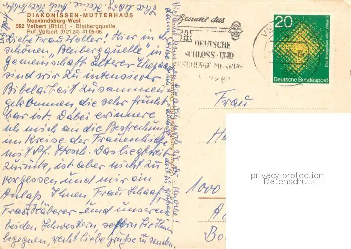 Velbert Diakonissen-Mutterhaus Altenheim-Kirchhalle u. erholungsheim Bergesruh Ausbildungsstaette Kirchhalle-Pniel Velbert postalisch gelaufen 1970 Erhaltung siehe scans [LiesaD40] LiesID40