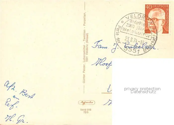 Veldenz Panorama Ortsmitte Ev Kinderheim Anlagen am Hammer Am Carlsberg Veldenz postalisch gelaufen 1974 Erhaltung siehe scans [WerneD78] WernPID7