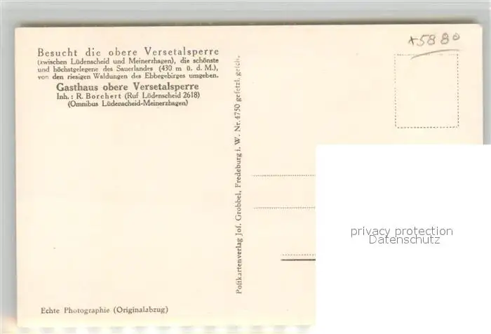 Versetalsperre Fliegeraufnahme See Ebbegebirge Kolbturm Versetalsperre postalisch nicht gelaufen 1921-1965 Erhaltung siehe scans [LiesaD40] LiesID40