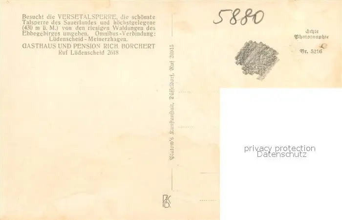 Versetalsperre Panorama Versetalsperre postalisch nicht gelaufen 1921-1965 Erhaltung siehe scans [WerneD78] WernPID7