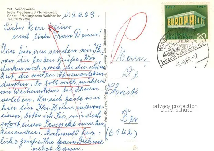 Vesperweiler Christliches Erholungsheim Waldesruhe im Schwarzwald Fliegeraufnahme Vesperweiler postalisch gelaufen 1969 Erhaltung siehe scans [FriedD77] Frierer