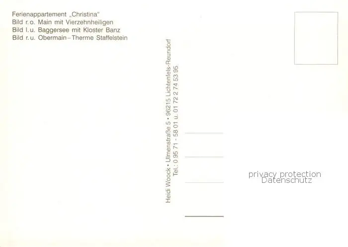 Vierzehnheiligen Ferienappartement Christina Main Baggersee mit Kloster Banz Obermain Therme Staffelstein Vierzehnheiligen postalisch nicht gelaufen nach 1965 Erhaltung siehe scans [WerneD78] WernPID7