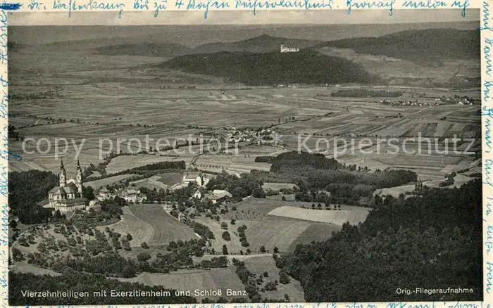 AK / Ansichtskarte Vierzehnheiligen mit Exerzitienheim und Schloss Banz Fliegeraufnahme Vierzehnheiligen