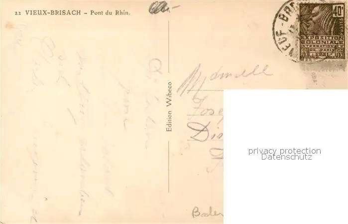 Vieux_Brisach Pont du Rhin Schiffsbruecke Blick zum Muenster Vieux Brisach postalisch gelaufen 1931 Erhaltung siehe scans [FriedD77] Frierer