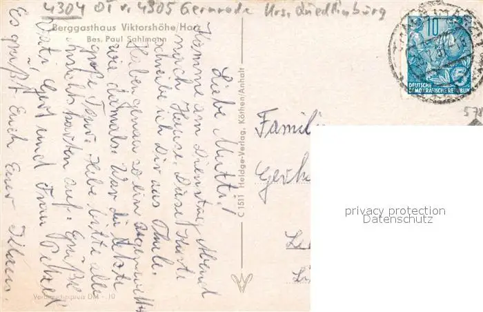 Viktorshoehe Berggasthaus Viktorshoehe postalisch gelaufen 1957 Erhaltung siehe scans [FriedD77] Frierer