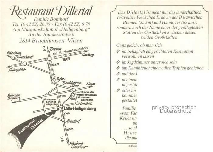 Vilsen Restaurant Dillertal Vilsen postalisch nicht gelaufen nach 1965 Werbekarte (keine Postkarte) Erhaltung siehe scans [FriedD77] Werbekarte (keine Postkarte) Frierer