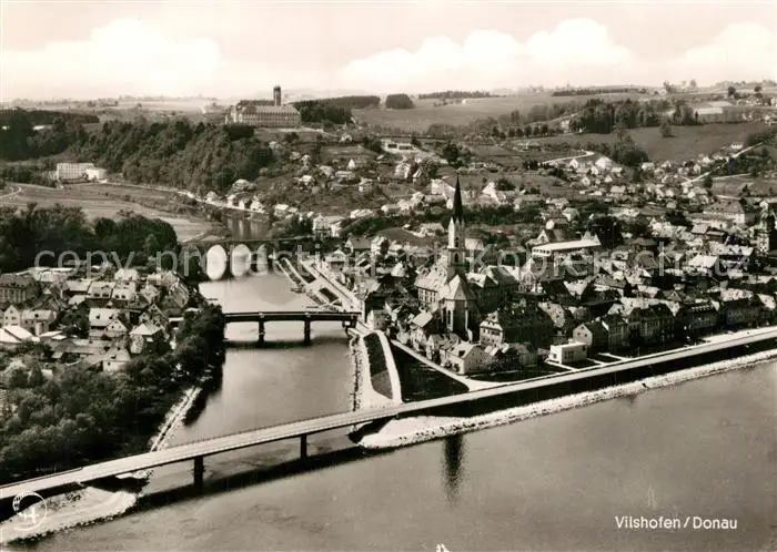 AK / Ansichtskarte Vilshofen_Donau Fliegeraufnahme Donaupartie Vilshofen Donau