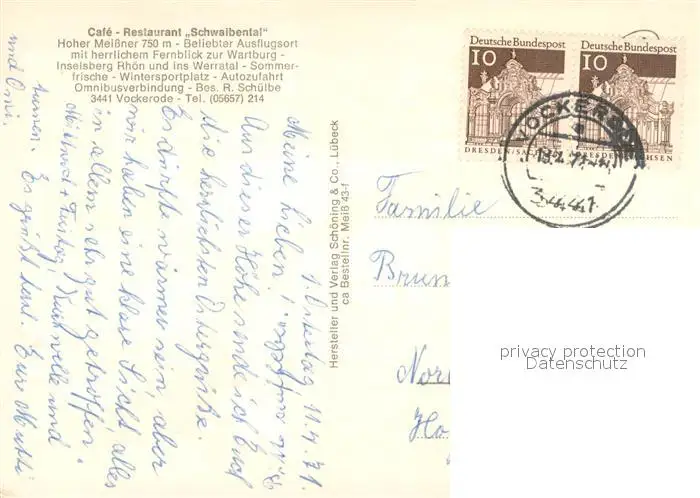 Vockerode_Eschwege Cafe Restaurant Schwalbental Gastraeume Vockerode Eschwege postalisch gelaufen 1971 Erhaltung siehe scans [WerneD78] WernPID7