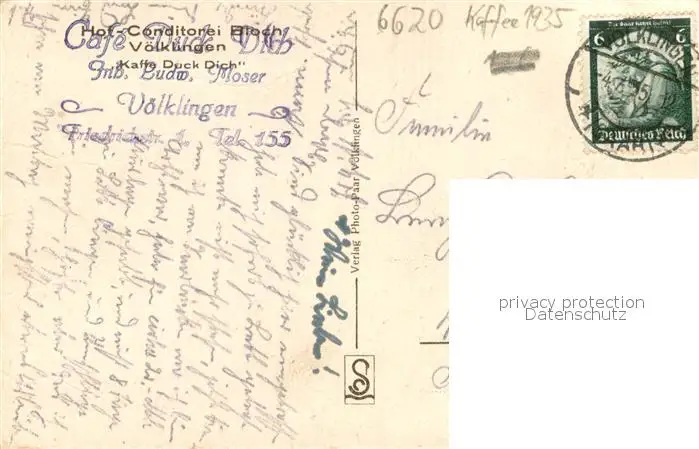 Voelklingen Hof-Conditorei Bloch Innen Voelklingen postalisch gelaufen 1935 Erhaltung siehe scans [LiesaD40] LiesID40