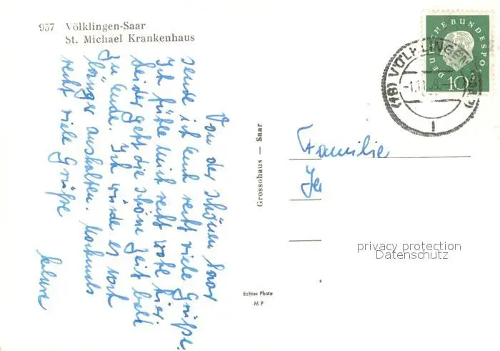 Voelklingen St Michael Krankenhaus Voelklingen postalisch gelaufen 1921-1965 Erhaltung siehe scans [WerneD78] WernPID7