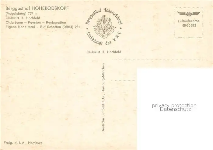 Vogelsberg_Rhoen Berggasthof Hoherodskopf Vogelsberg Rhoen postalisch nicht gelaufen nach 1965 Fliegeraufnahme Erhaltung siehe scans [WerneD78] Fliegeraufnahme WernPID7