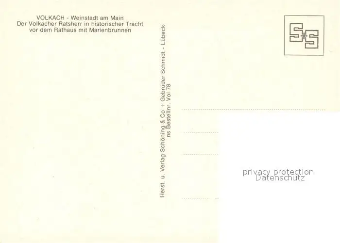 Volkach Volkacher Ratsherr in historischer Tracht Rathaus Marktbrunnen Wappen Volkach postalisch nicht gelaufen nach 1965 Erhaltung siehe scans [FriedD77] Frierer