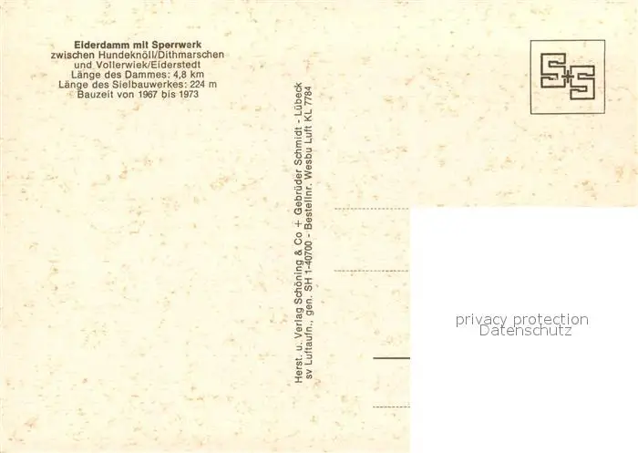 Vollerwiek Eiderdamm mit Sperrwerk Fliegeraufnahme Vollerwiek postalisch nicht gelaufen nach 1965 Erhaltung siehe scans [FriedD77] Frierer