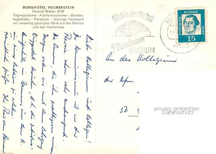 Volmarstein Burghotel Volmarstein Terrasse u. Aussicht Volmarstein postalisch gelaufen 1965 Erhaltung siehe scans [LiesaD40] LiesID40