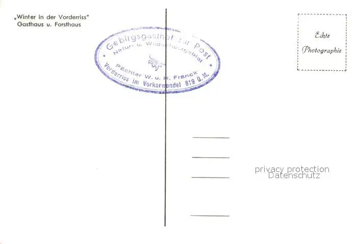 Vorderriss Winter in der Vorderriss Gasthaus und Forsthaus Vorderriss postalisch nicht gelaufen 1921-1965 Erhaltung siehe scans [FriedD77] Frierer