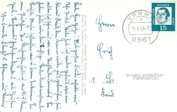 Vorra_Pegnitz Schloss Marienkirche Pegnitzpartie mit Hoher Wacht Kirche Inneres Fachwerkhaus Vorra Pegnitz postalisch gelaufen 1964 Erhaltung siehe scans [WerneD78] WernPID7