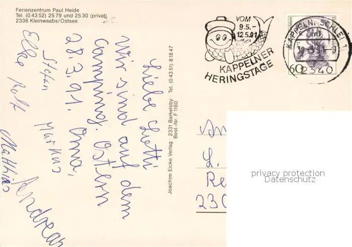 Waabs Ostsee Camping Ferienzentrum Paul Heide Teilansichten Strandpartien Waabs postalisch gelaufen 1991 Fliegeraufnahme Erhaltung siehe scans [FriedD77] Fliegeraufnahme Frierer