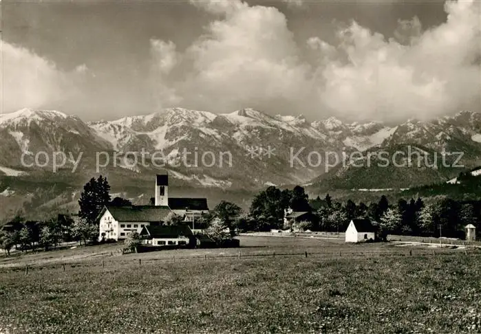 Wackersberg_Bad_Toelz Ortsansicht mit Kirche Blick zur Benediktenwandgruppe Wackersberg_Bad_Toelz postalisch nicht gelaufen nach 1965 Erhaltung siehe scans [FriedD77] Frierer