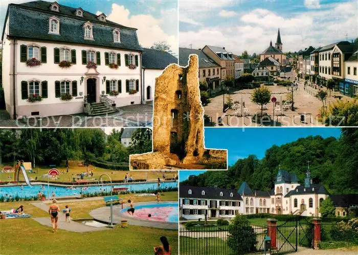 AK / Ansichtskarte Wadern Schwimmbad Rathaus Schloss Dagstuhl Schlosspark Wadern