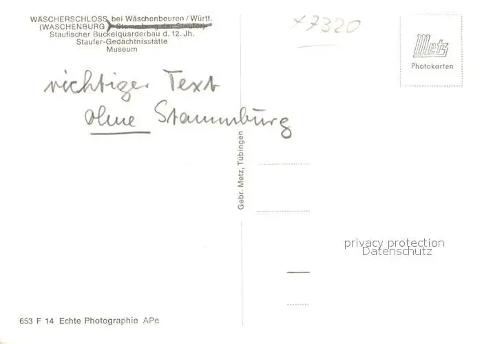 Waeschenbeuren Waescherschloss Staufer Gedaechtnisstaette Museum Waeschenbeuren postalisch nicht gelaufen nach 1965 Erhaltung siehe scans [FriedD77] Frierer