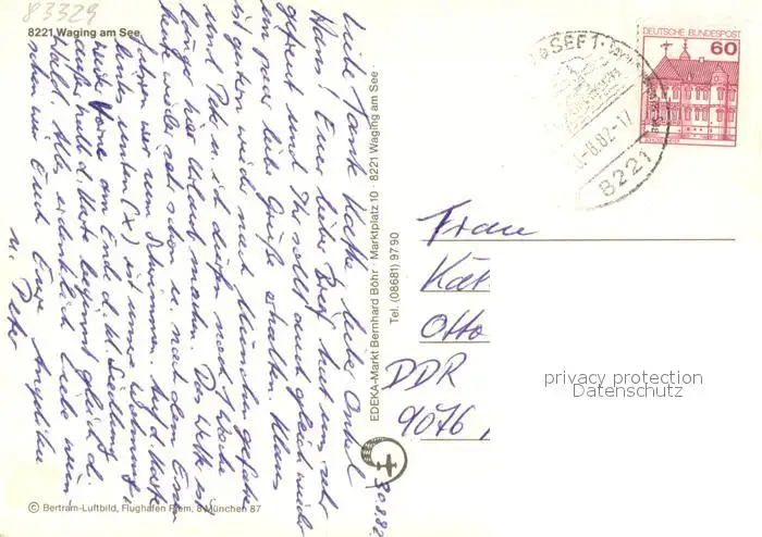 Waging_See Fliegeraufnahme Waging_See postalisch gelaufen 1982 Erhaltung siehe scans [WerneD78] WernPID7