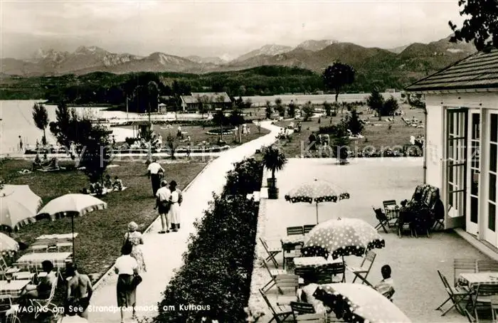 AK / Ansichtskarte Waging_See Strandpromenade am Kurhaus Waging_See