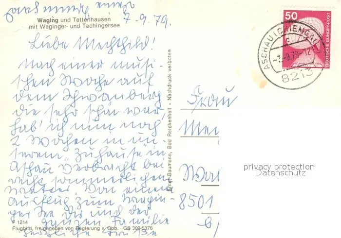 Waging_See mit Tettenhausen Waginger und Tachingersee Fliegeraufnahme Waging_See postalisch gelaufen 1979 Erhaltung siehe scans [WerneD78] WernPID7