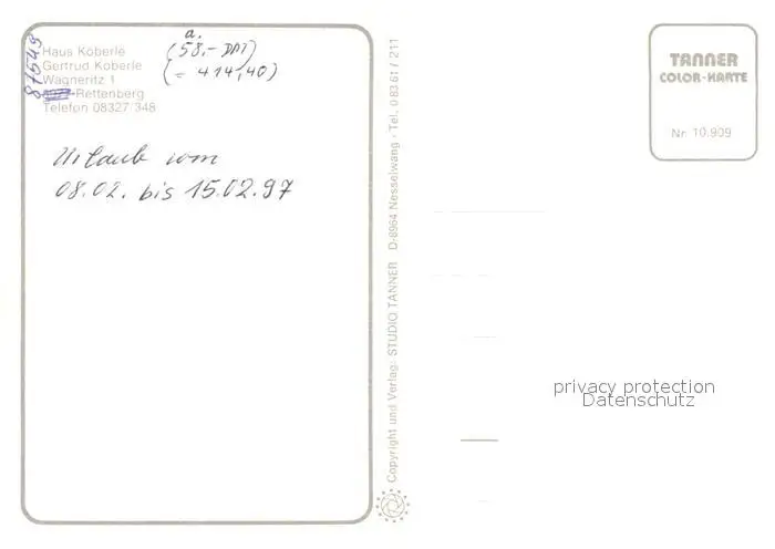 Wagneritz Haus Koeberle Gaststube Turm Panorama Wagneritz postalisch nicht gelaufen 1997 Erhaltung siehe scans [WerneD78] WernPID7