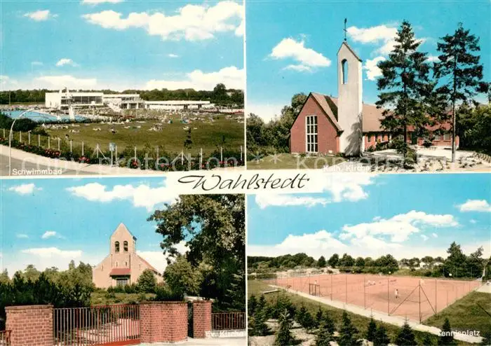 AK / Ansichtskarte Wahlstedt Schwimmbad Kath Kirche Ev Kirche Tennisplatz Wahlstedt