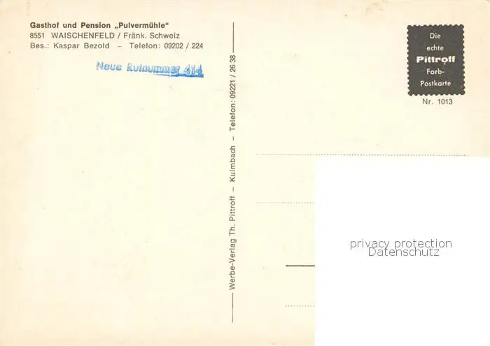 Waischenfeld Gasthof Pension Pulvermuehle Gaststube Waischenfeld postalisch nicht gelaufen nach 1965 Erhaltung siehe scans [WerneD78] WernPID7
